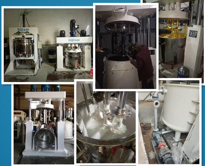 是一種多功能、強制性攪拌機,釜內有三根不同形式的攪拌器,其中一根低速攪拌器在繞釜體軸線轉動,其余兩根高速攪拌裝置又以不同的轉速繞自身軸線高速自轉,使物料在釜內作復雜的運動,受到強烈的剪切和混合。設備內山形刮壁刀繞釜體軸線轉動,將粘在壁上和底部的原料刮出參與混合,使其效果更為理想。設備密封性好,可電加熱(水冷卻)抽真空,具有良好的排氣除泡。強力分散機缸蓋可液壓升降,缸體可自由移動,操作十分方便。強力分散機攪拌器的形式,根據(jù)物料要求可為多層槳葉式、框式、蝴蝶式、葉輪式等。攪拌機通常配套系列液壓擠出機,以實現(xiàn)膏狀物料的擠出。